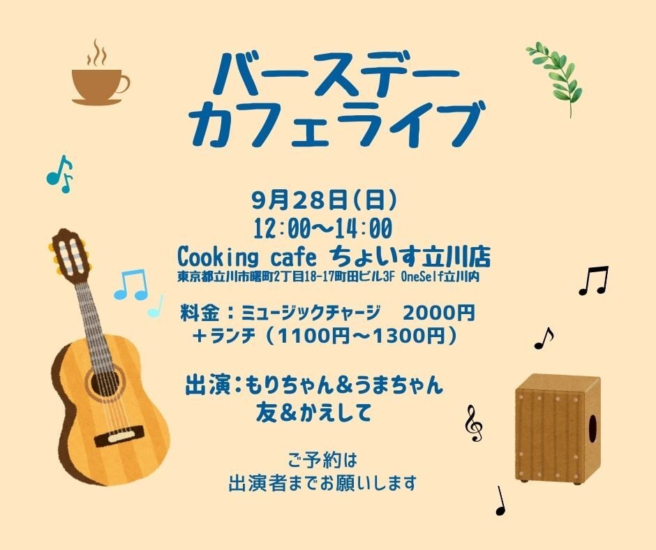 前回のライブから、1年。「バースデイライブ、一緒にやろうよ」というお誘いをPR塾の先輩であるもりちゃんからいただき、開催いたします!!(配信するのは「友&かえして」の演奏です。ご注意ください。)